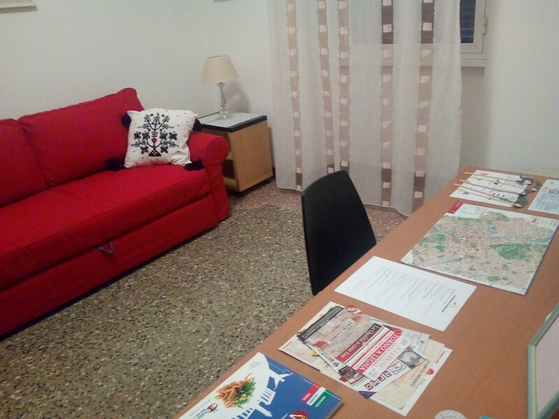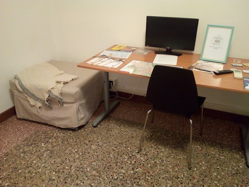 Il soggiorno ha un ampio tavolo su cui potrete scrivere comodamente le vostre cartoline o leggere le guide e consultare le mappe.