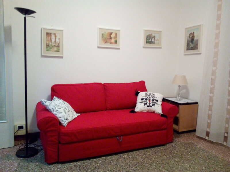 Nel soggiorno è presente l’aria condizionata e il riscaldamento come nella camera da letto. Inoltre il puf può diventare letto singolo.